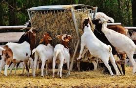 একটি প্রাপ্তবয়স্ক পাঁঠার দৈনিক ১.৫-২.৫ কেজি কাঁচা ঘাস এবং ২০০-৩০০ গ্রাম দানাদার খাদ্য প্রয়োজন। সারণি-১ ছাগলের দানাদার খাদ্যের সাধারণ মিশ্রণ (%) খাদ্য উপাদান শতকরা হার (%) চাল/গম/ভুট্টা ভাঙ্গা ১০.০০ গমের ভুসি/আটা/কুঁড়া ৪৭.০০ খেসারি/ মাসকলাই /অন্য ডালের ভুসি ১৬.০০ সয়াবিন/ তিল/নারিকেল/সরিষা/ খৈল ২০.০০ শুঁটকি মাছের গুঁড়া ১.৫০ ডাই-ক্যালসিয়াম ফসফেট ২.০০ লবণ ১.০০ ভিটামিন মিনারেল প্রিমিক্স ০.৫০ বিপাকীয় শক্তি (মেগাজুল /কেজি) ১০.০০ বিপাকীয় প্রোটিন (গ্রাম/কেজি ৬২.০০ ছাগলের জন্য ঘাস চাষ: ঘাস সরবরাহের জন্য বিভিন্ন জাতের দেশি ঘাস খাওয়ানো যায়। ইপিল ইপিল, কাঁঠাল পাতা, খেসারি, মাসকলাই, দুর্বা, বাকসা ইত্যাদি দেশি ঘাসগুলো বেশ পুষ্টিকর । এছাড়া উচ্চফলনশীল নেপিয়ার, স্পেনডিডা, এন্ড্রোপোগন, পিকাটউলুম ইত্যাদি ঘাস আবাদ করা যেতে পারে। ছাগলকে খড় খাওয়ানো: ঘাস না পাওয়া গেলে খড়কে ১.৫-২.০ ইঞ্চি (আঙুলের দুইকর) পরিমাণে কেটে নিম্নেবর্ণিত পদ্ধতিতে প্রক্রিয়াজাত করে খাওয়ানো যেতে পারে। এজন্য ১ কেজি খড়ের সাথে ২০০ গ্রাম চিটাগুড়, ৩০ গ্রাম ইউরিয়া ৬০০ গ্রাম পানির সাথে মিশিয়ে ইউএমএস তৈরি করে খাওয়ানো যেতে পারে। এর সাথে এ্যালজি উৎপাদন করে দৈনিক ১-১.৫ লিটার পরিমাণে খাওয়াতে হবে। একটি ছাগল দৈনিক ১.০-২.০ লিটার পানি খায়। এজন্য পর্যাপ্ত বিশুদ্ধ পানি সরবরাহ করতে হবে।